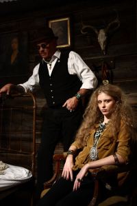 young, when they used their heart surgeon father’s tools to learn wire working. “For this collection, we wanted to tell a story, but really touch back on our different aesthetics”, Danielle told me. They did that with a kind of backwoods bohemian meets big city glam vibe, rough yet elegant. “We were inspired by the frontier, the Wild, Wild West mixed with the totally different world of the shamelessly opulent Roaring ‘20s and a sort of a Great Gatsby vibe,” according to Jodie.