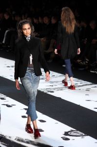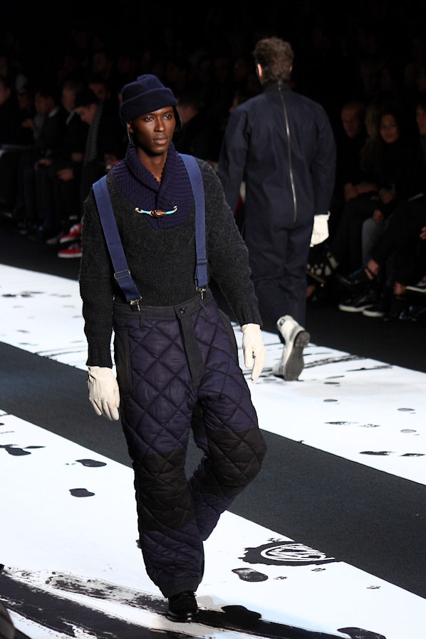 Everything about the show was edgy, from the paint-spattered runway to the hardware that decorated the designs. Not surprisingly, denim was king at this show, since G-Star prides itself on taking luxury denim to the streets, with its use of the raw, untreated fabric.