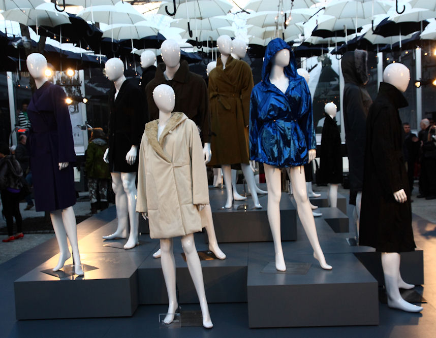 A canopy of black and white umbrellas covered the courtyard at the Lincoln Center tents, as Italian outerwear designer Allegri presented its Fall 2011 collection at Mercedes-Benz Fashion Week. It was the New York debut for the label, but so many of the looks were familiar. Many of the retro styles came from collaborations with other designers, like Giorgio Armani or Martin Margiela, coats that became classics over time.