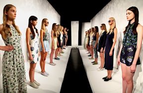 Their Spring/Summer 2012 presentation at Mercedes-Benz Fashion Week was no exception. It was inspired by shared childhood memories. Alexandra told me, “when Kristen and I were little, we used to share a bedroom together, and our bedroom was covered in chintz. We had chintz wallpaper, chintz bedding, chintz curtains, chintz everything.” Then Kirsten chimes in with, “chintz lampshades!”