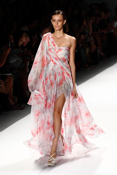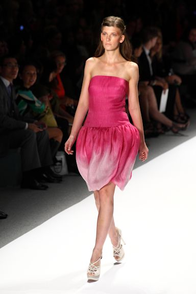 What followed was a beautiful collection, un homage to the tulip, how it blooms, how it changes, how its colors shift. Part artist, part designer and probably part architect, Tadashi Shoji’s collection is colorful and superbly feminine. Even the colors came from the garden: rosebud, fern, magnolia and willow. The hues faded from bright to white, like tie-dyed done expensively.