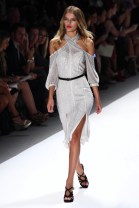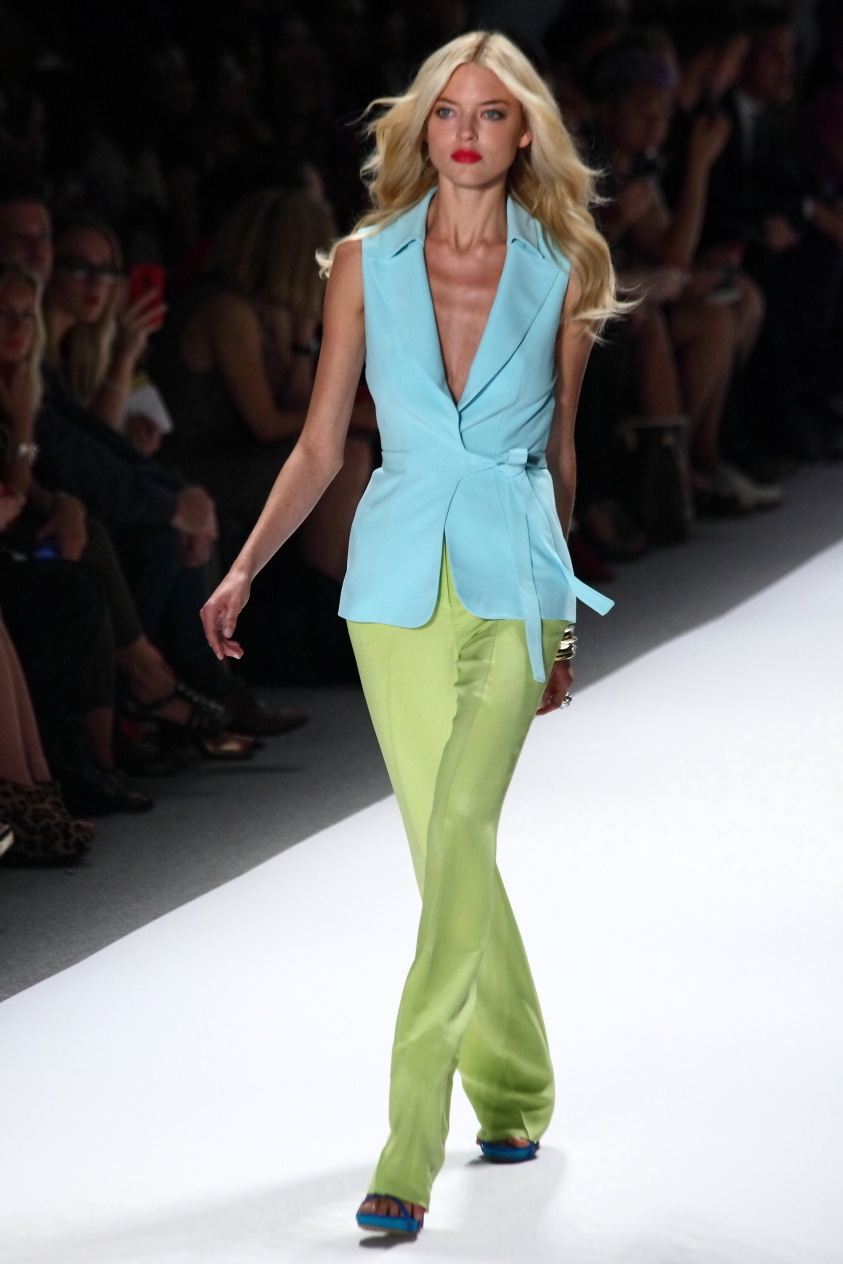 Luca Luca is, as always, feminine and sophisticated. Dresses had dreamy movement in soft summer fabrics. There were high waist slacks topped by candy colored print tops, and whites were crisp and clean. Pants suits were business like without being masculine.