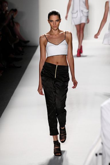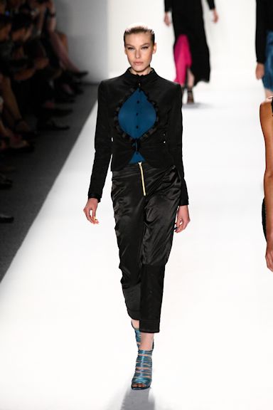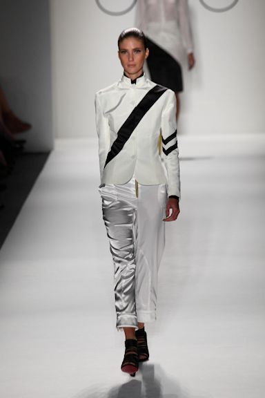 If you were wondering where Claude Morais and Brian Wolk spent their summer vacation, there’s a big clue in their runway show at Mercedes-Benz Spring/Summer 2012 Fashion Week. From the bright-colored, bold striped, jockey-inspired pieces, to the solid braids down the back of their models to the galloping pace of the catwalk, it all just screams horse country.