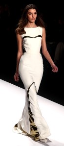 If you concentrate on the gowns and leave out the fur, there’s still plenty to talk about in this collection. A lot of the abundant glitz is missing this season, and that is definitely by design. But it didn’t detract from the elegance of the collection. The color palette was muted, but still stunning. At the same time elegant and edgy, a black chiffon sleeveless gown embellished with black stones presented a new, younger face to the J. Mendel woman.