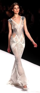 There’s no way around the fact that J. Mendel is, first and foremost, a furrier. Since fur is not so much my thing, it would have been easy to skip this particular runway show, but the truth is, Gilles Mendel has a way around an evening gown that can’t be denied, and for that reason, this is one of the must-see shows of Mercedes-Benz Fashion Week.
