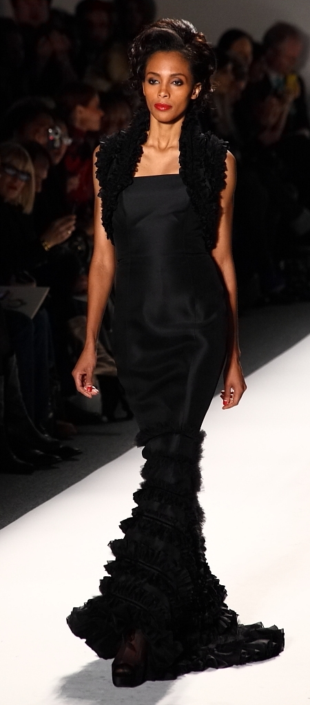 And then, there’s his evening wear, a collection that goes beyond the red carpet, all the way to the ball.  A long, sexy black number was decorated with feathers, a magnificent, wide ball gown was ruffled from head to toe.