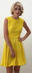 The textures are a study in contrast that all work together perfectly: double face crepes and four-ply silks mesh perfectly with French lace and chiffon. The prints, from lattice prints to polka dots and botanicals are fun and quirky, the embellishments just enough and never over-the-top. The colors are bright and fun, from vivid yellow and deep blues to, one of my favorites, a persimmon floral print dress that was perfectly tailored, but easy to wear.