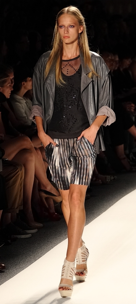There were plenty of looks for the girls of summer. Dresses, shorts and blazers were soft and feminine, and every one creative. A geometric sleeveless dress with a geometric design in patterns, pink and grey was truly beautiful.