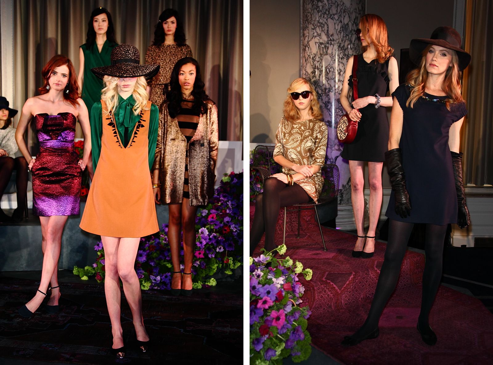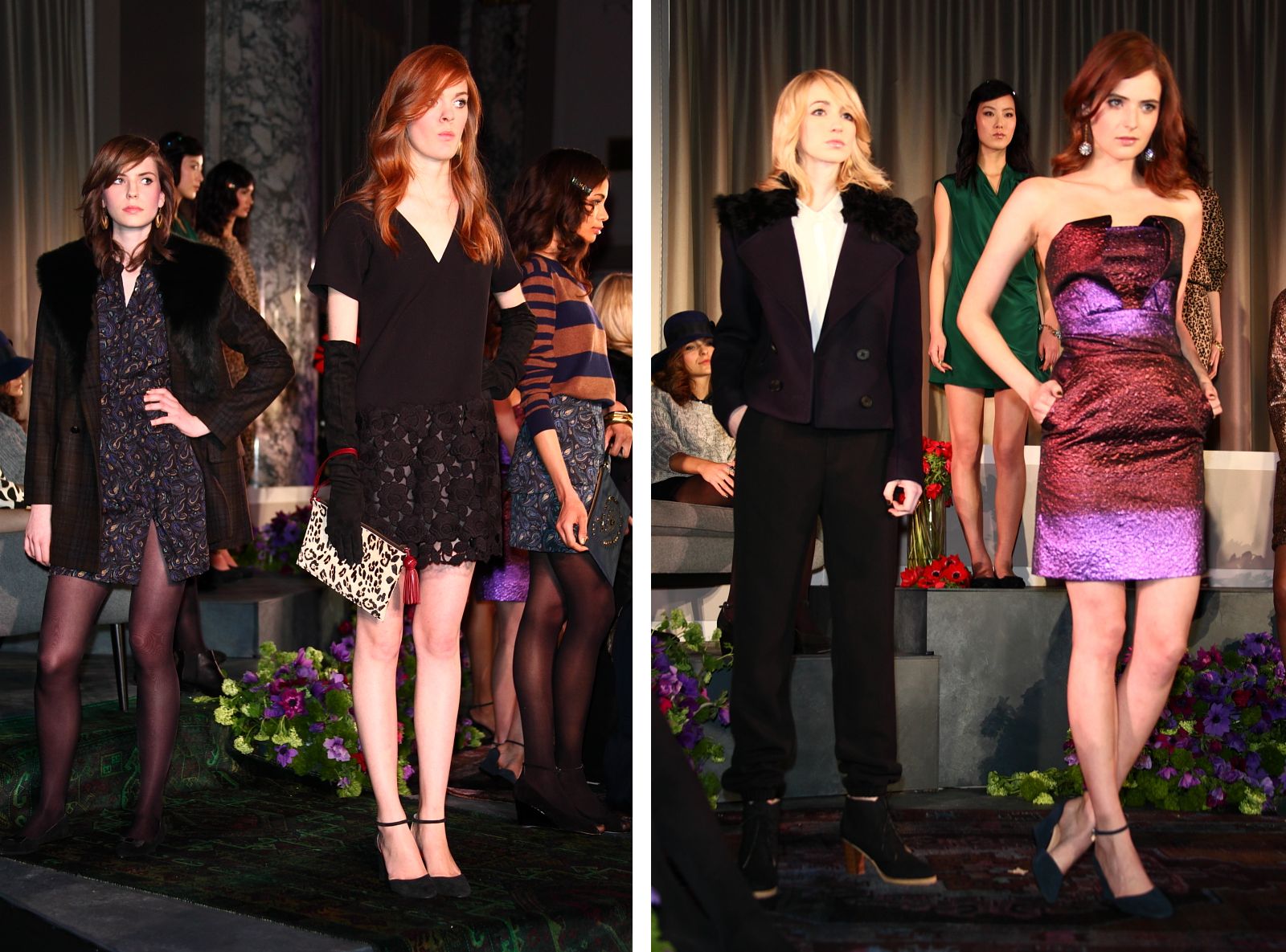 Presented, as they were, in a ballroom at the W, in dark-ish light, with models standing, or sitting on comfy chairs, it was a scene straight out of the ‘40s. And that gave Pozgay’s designs a real retro feel. But make no mistake, these were clothes for the modern girl, racing for a cab after clubbing in Meatpacking till just before dawn.