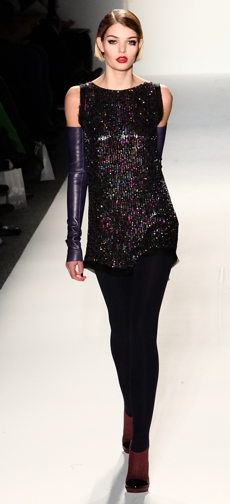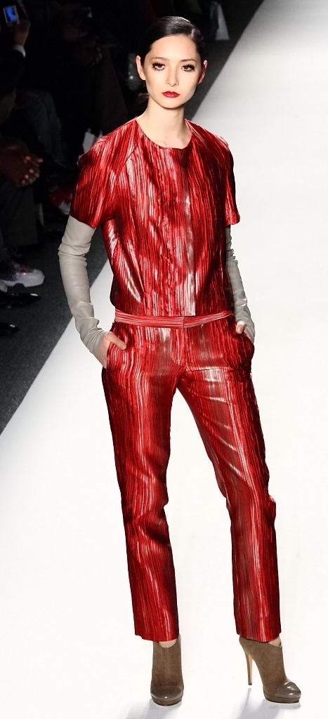 His use of color, always refreshing in Winter looks, was one of the impressive aspects of his collection. Oh, yes, there were the requisite blacks and grays, but the looks popped with peacock blues, glimmering silvers and bright reds.