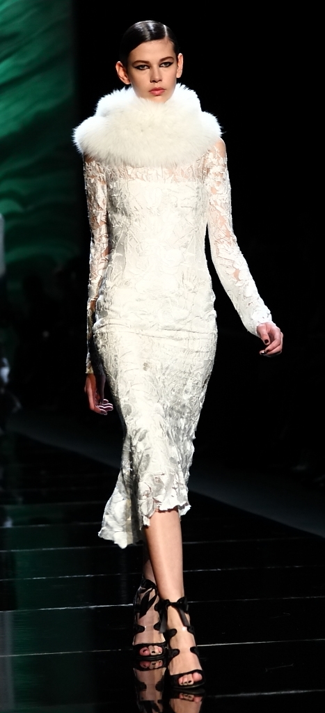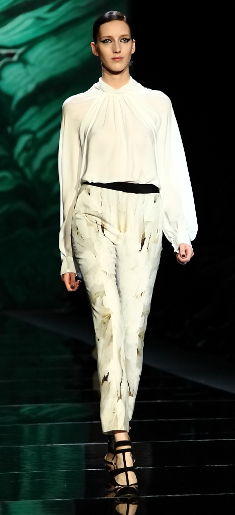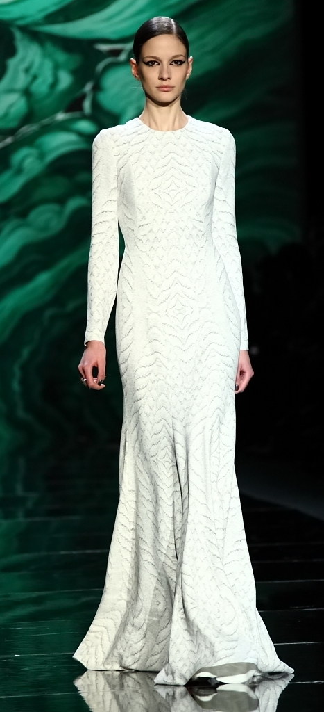 For Fall/Winter 2013, she started the runway with winter whites. I’ve never been much of a believer in winter white, but these perfectly tailored, soft suits and dresses (one covered with a full-length jacket that was stunning) could convert me.