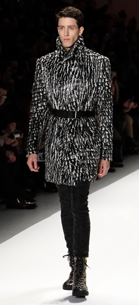 That was the beauty. Then came the beast. Outerwear inspired by harsh Nordic winters and the beast trying to protect itself from the cold. That outerwear was absolutely inspired with big, warm fabrics and the architectural elements that sets Custo Barcelona apart.