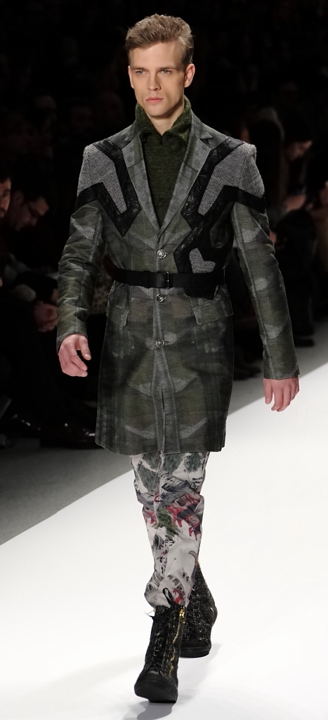 Quilted coats were beautifully embellished. One men’s jacket in a blue tribal print was splendid. And big (I mean, really big) woolly scarves topped many of the looks.