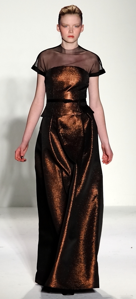 You expect to be blown away every time you sit down to watch Joanna Mastroianni’s runway show. And, somehow, you always are. For Fall/Winter 2013, she found her inspiration in strong women. I know, it seems just about everyone designed for “strong women” this season, but this is a different kind of strength.