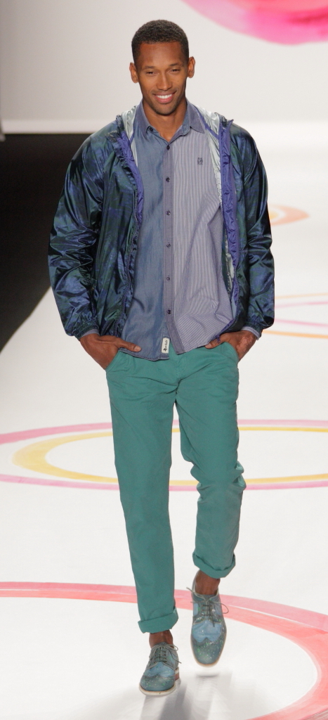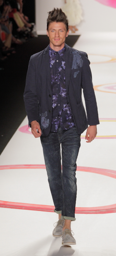 There was menswear, in Desigual’s classic blazers and bright colored shirts, conservative in design, pure party in patterns and hues.
