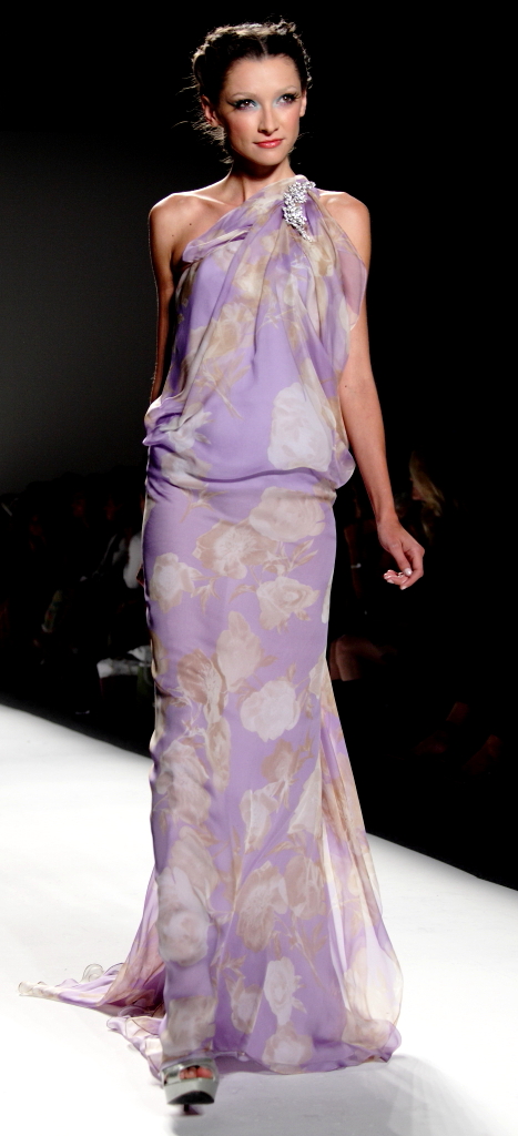 Her spring/summer runway at Mercedes-Benz Fashion Week was just about the opposite of dark. Think of all the colors that remind you of spring, and they were represented: the lightest blue, the softest, creamiest sea green, shiny silver blended with pink, gorgeous lilac and bold tangerine. Some were printed with big, soft flowers, just enough to make them pretty, but never overpowering.