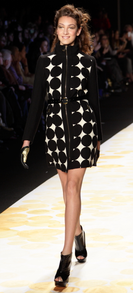 Let’s start with their overriding theme: “La Vida es Chula”, or “life is cool”. Take a look at the smiling, posing, joyful models on the runway, and you know, life can be cool. The theme of the show was “Love in the City”, a mod, yet modern look at boys and girls having a ball. Think Twiggy or Jean Shrimpton, skipping through the streets of London, New York or Madrid. No, make that Barcelona, the city that inspired the looks.