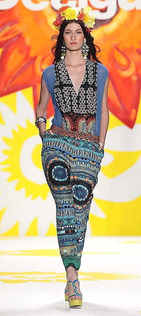 What do you get when you combine joy, the brightest colors, heads and clothes full of flowers and Adriana Lima? It can only mean one thing: Desigual is debuting another collection at Mercedes Benz Fashion Week.