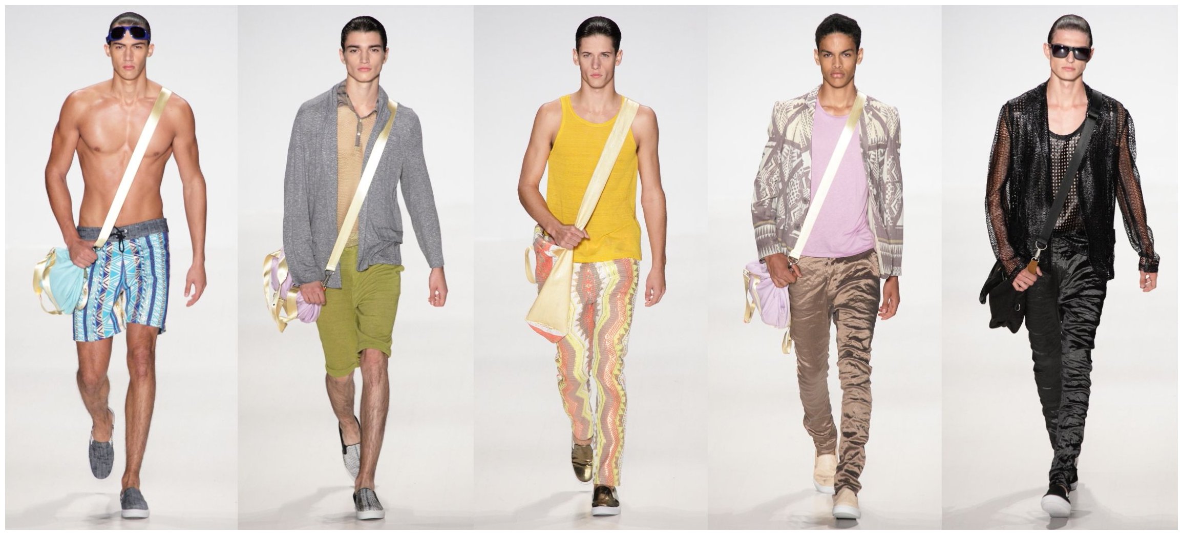 Menswear was brightly patterned and comfy-looking, truly wearable for a day on a Brazilian beach or casual beers with the boys.