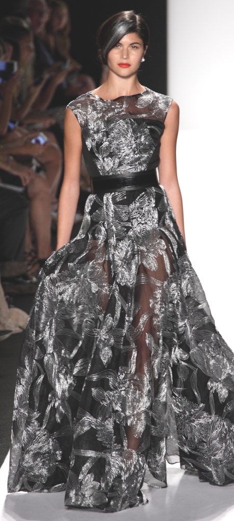 I have to say it: Carmen Marc Valvo is one of the designers I truly love, and here’s why: there is such a beautiful optimism to his designs. He creates clothing you should love to wear, not only because it’s beautiful, but it’s beautifully tailored, made with care. I have the feeling that, with every flourish of a pencil, with every stitch sewn, he’s thinking of every women (and now, man) who will wear his clothes and wishing them joy. I’ve never met him, so I’m obviously making that up, but I believe I’m right. It shows in every look.