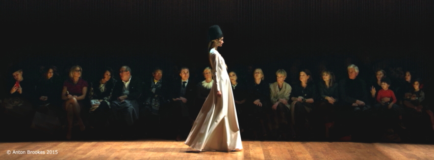 The shining jewel tones in her dresses, suits and wide pants were reminiscent of the city’s bright, colorful bazaar. Big wrap coats and oversized scarves were perfect for making one’s way through the narrow, old streets in the winter time. Hats and beautifully embroidered vests were reminiscent of the whirling dervishes, the holy men who spin in a raptured dance in Istanbul clubs and halls.