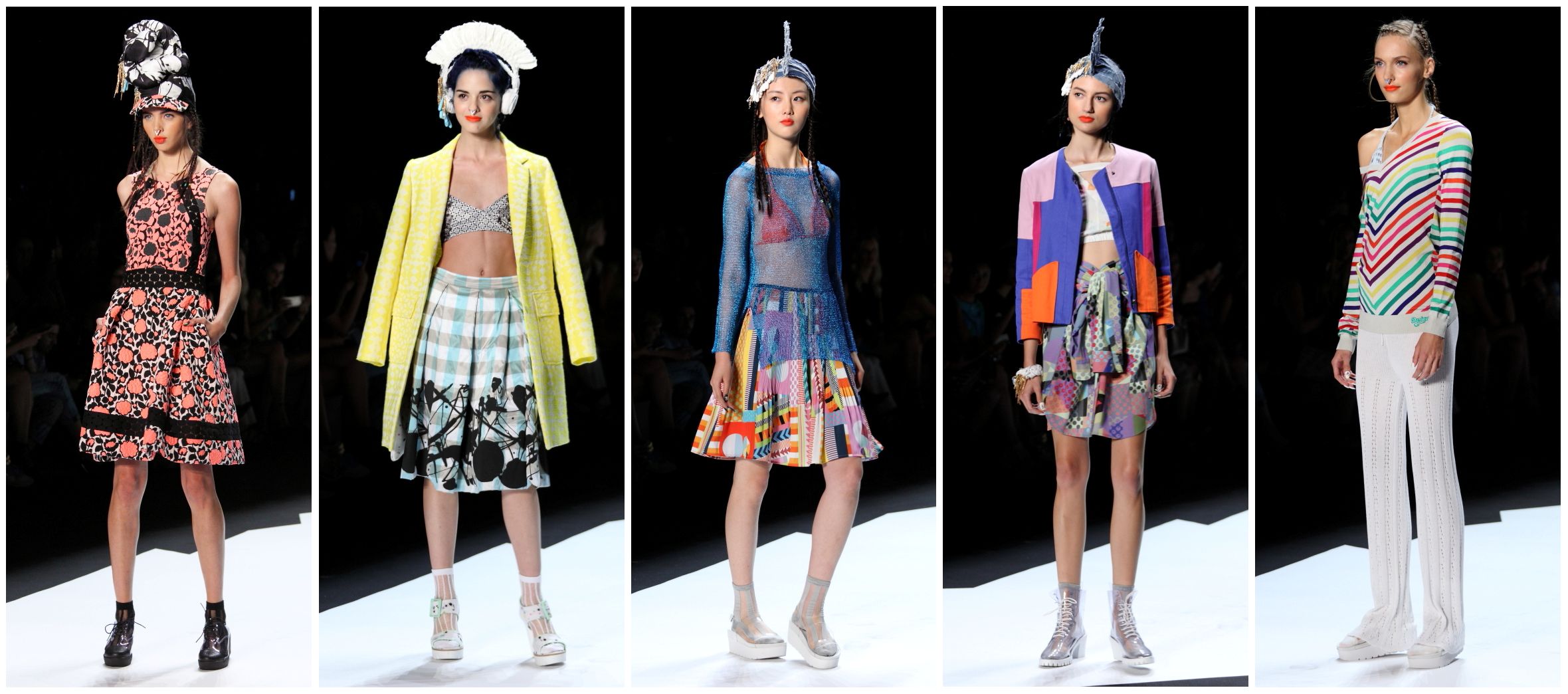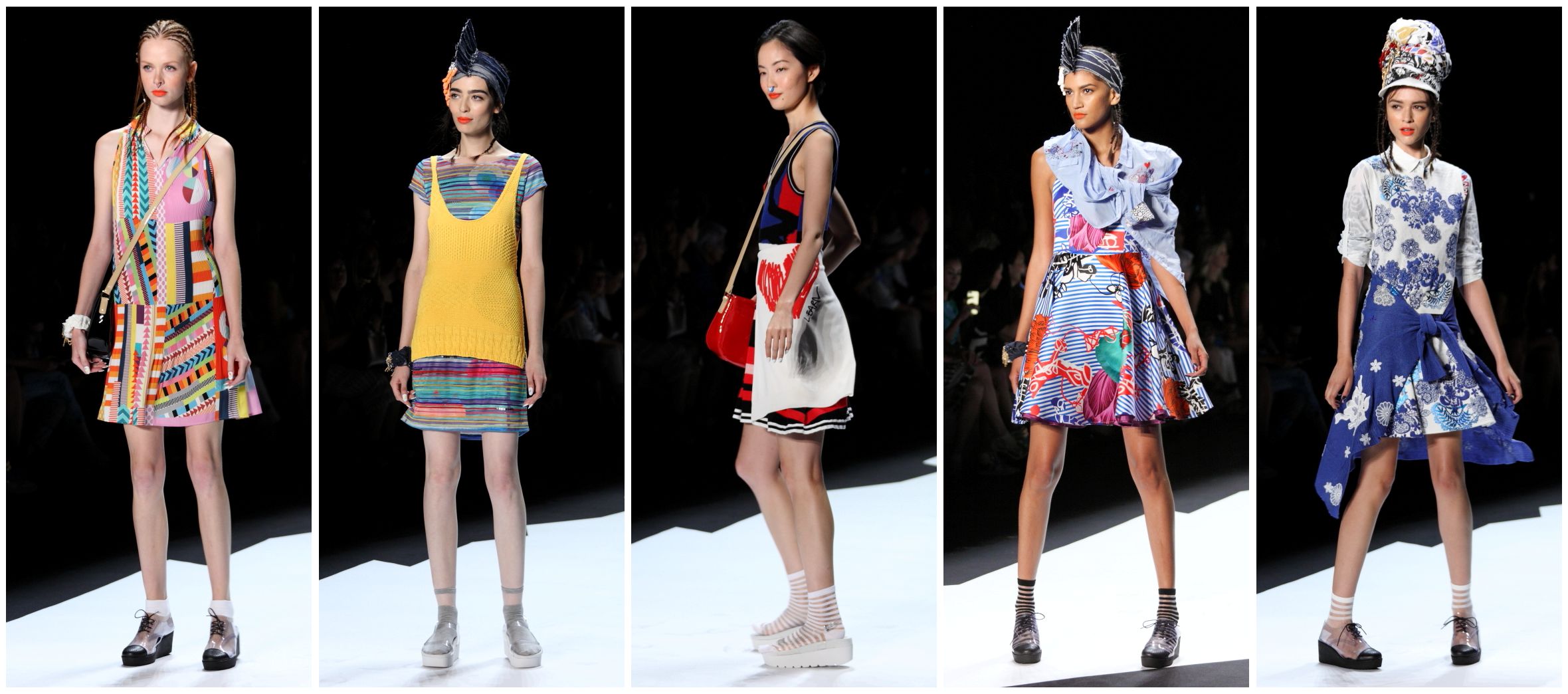 The sophisticates? Yeah, just as bright and sunny. But, see, this is what makes Desigual the must-see show every season. The bright colors and bold prints just make you smile, you can’t help it. The patterns are designed to make you happy, and they do. But this is no gimmicky line, easily distracting you with bright, shiny things. The dresses, skirts, tops and jeans are beautifully made, well-tailored and, even better, they look good on nearly every woman.