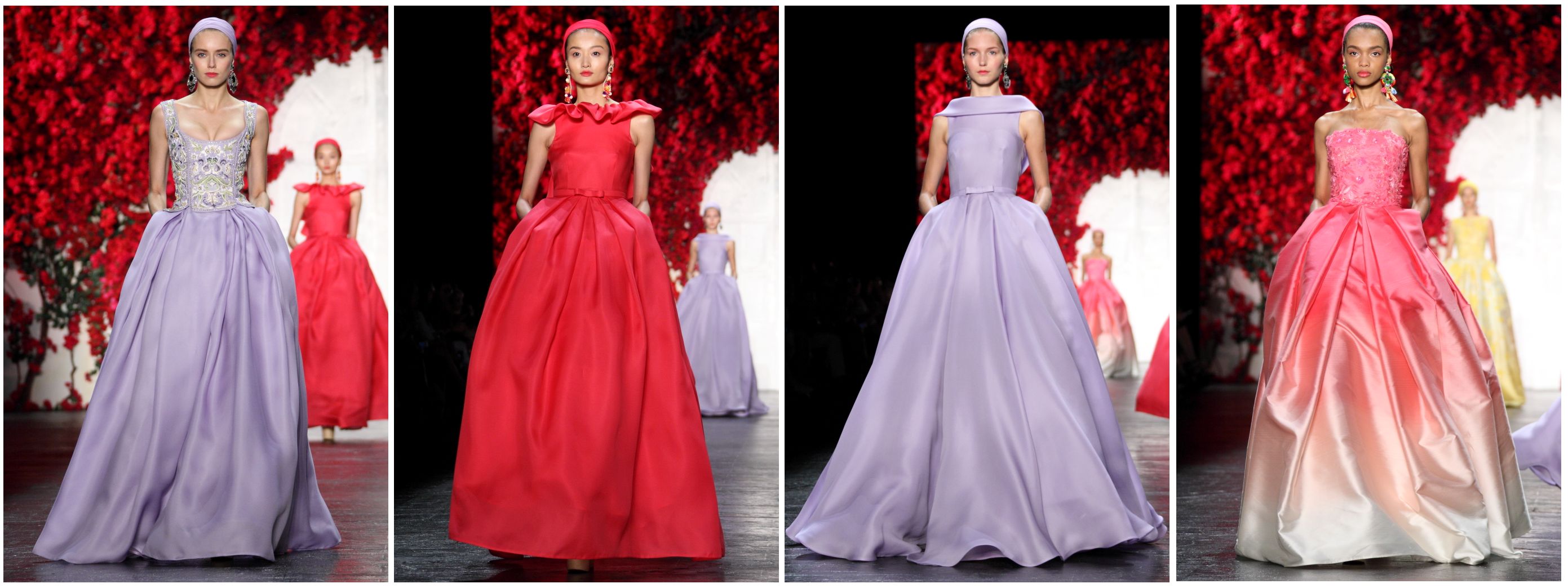 Every piece that passed on the catwalk was more beautiful than the last: a floral embroidered gown in bougainvillea with caviar beading, a shimmering opalescent crystal cocktail dress, a raffia lace cocktail dress covered in scarlet flowers, a shining striped ombre beaded jumpsuit.
