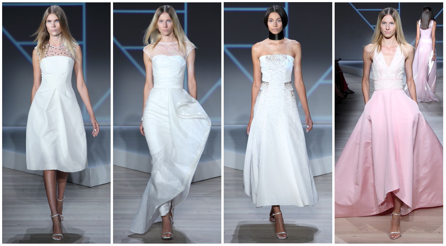 Ivory gave way to blush, in the most beautiful gown in liquid organza that looked like it was melted and poured and another in faille topped with a nebula lace bodice, covered in pearls.